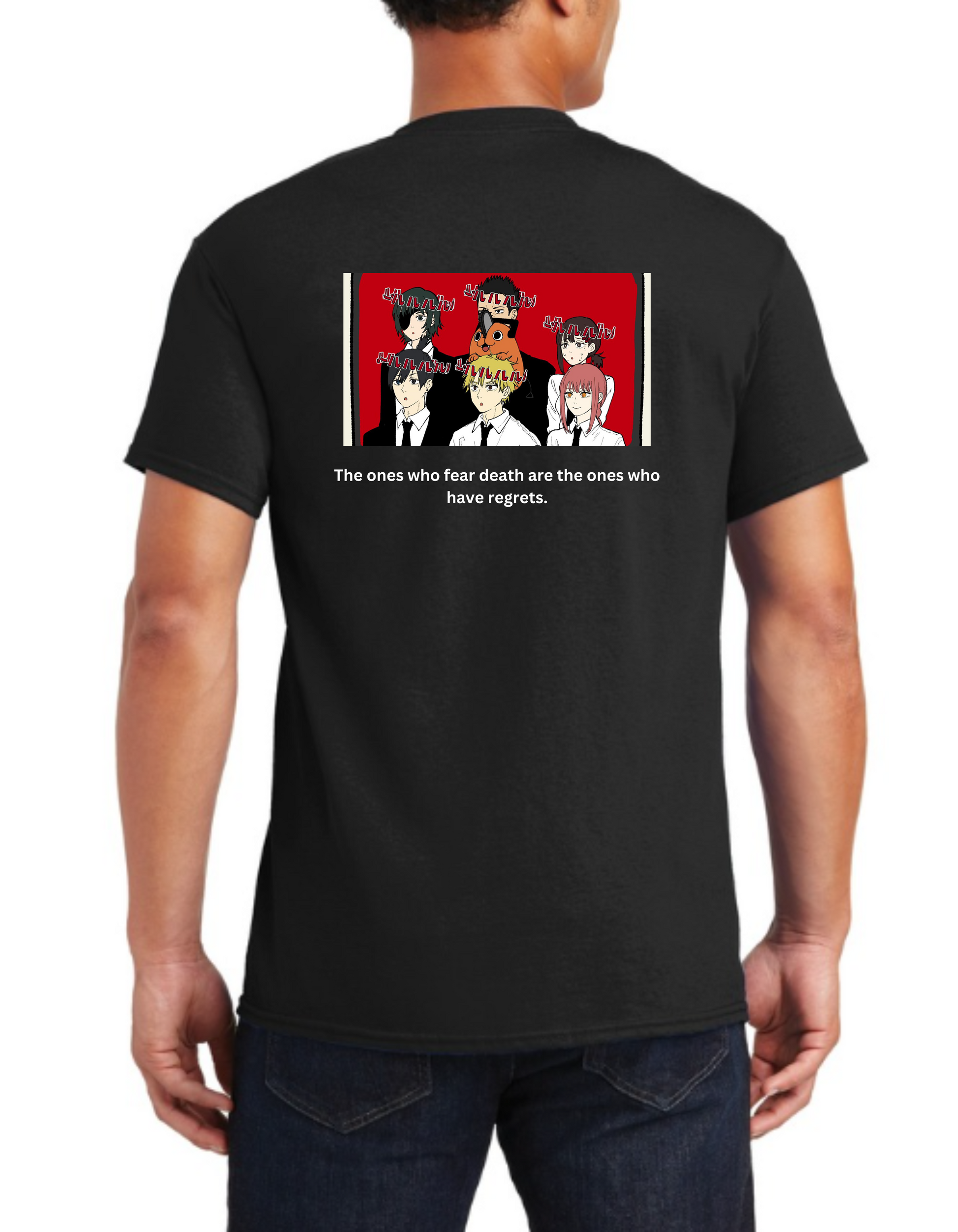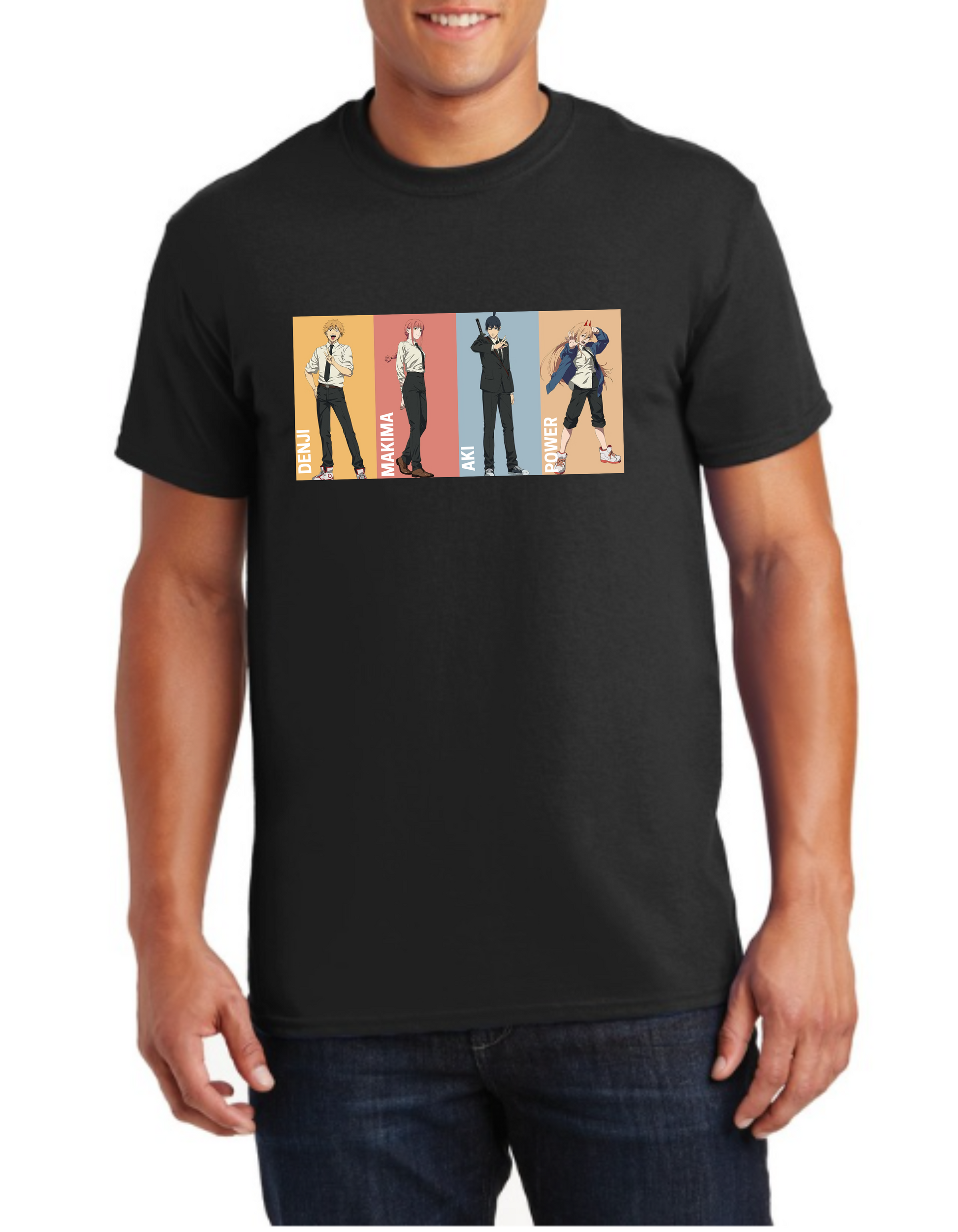 Step into the world of Chainsaw Man with this fierce t-shirt, showcasing Makima, Denji, Power, and Aki. Embrace the chaos and power of the squad as they battle devils in this bold, eye-catching design.