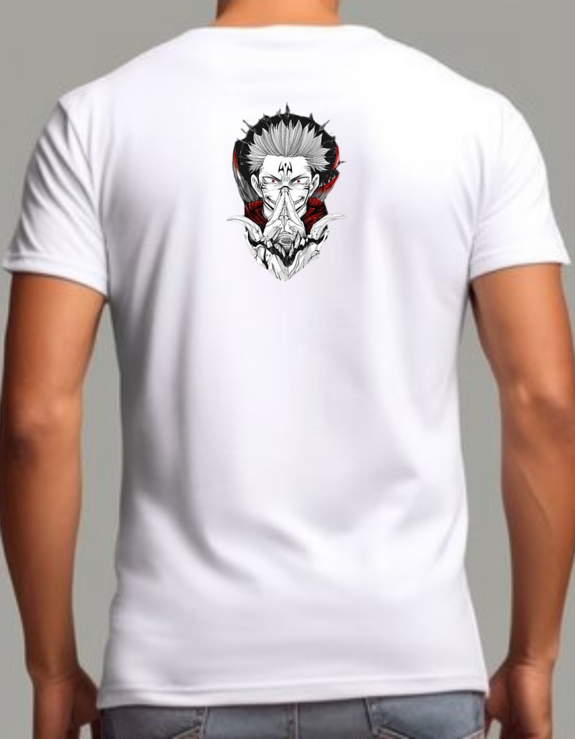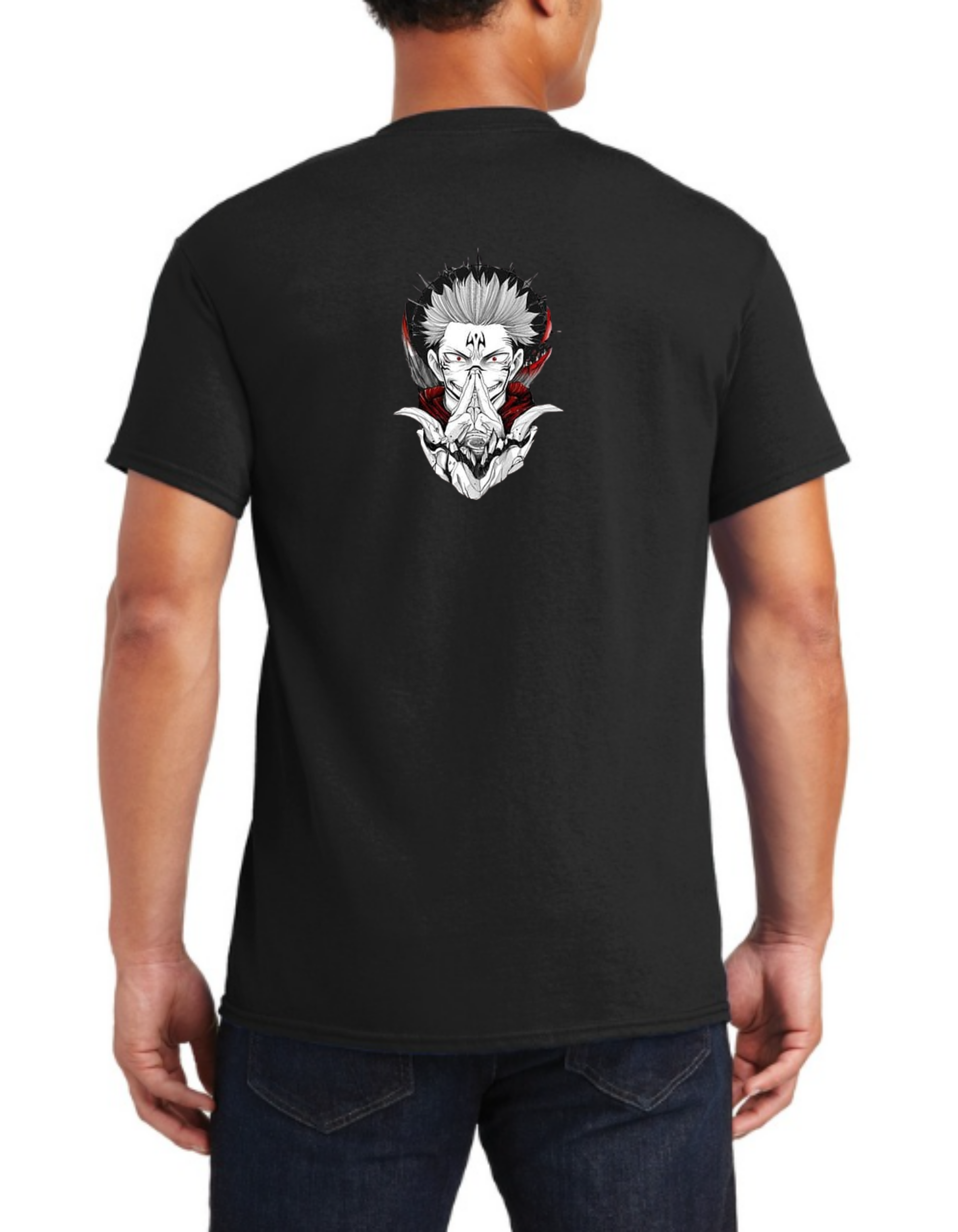Embrace the dark power of the King of Curses with this Sukuna t-shirt. Featuring his menacing presence and iconic markings, this design captures the fear and strength of the ultimate curse from Jujutsu Kaisen.